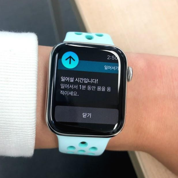 (참고:1시간 동안 애플워치의 높이가 변화가 없으면 일어나서 움직이세요 하고 알림을 줌)